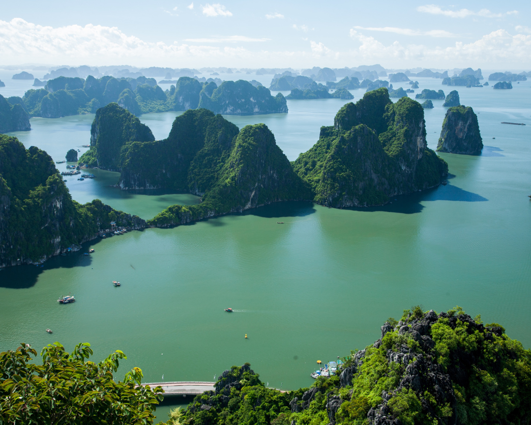 • Enjoy a Vietnamese buffet lunch while cruising past iconic limestone formations